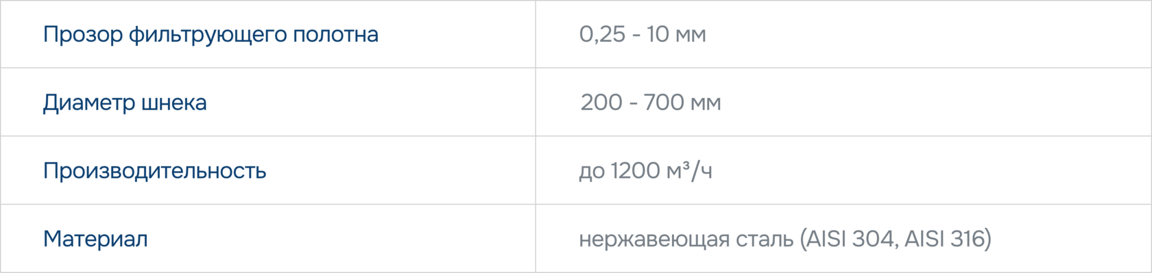 шнек изготовлен из износостойкой углеродистой стали, а в зоне фильтровального полотна уставлена самоочищающаяся долговечная щетка.