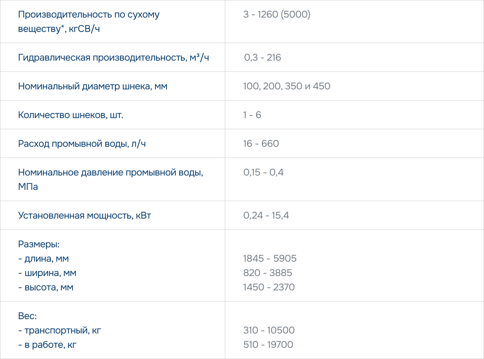 Энергоэффективность и энергосбережение. Благодаря особой конструкции шнека и принципу работы дегидратора достигается высокая энергоэффективность и низкие расходы реагентов, промывной воды. Широкий диапазон мощности и производительности выпускаемых моделей позволяет подобрать оптимальное оборудование для каждого проекта.