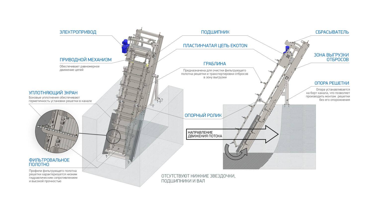 Надежное решение для механической очистки на очистных сооружениях канализации, насосных станциях и водозаборных сооружениях.