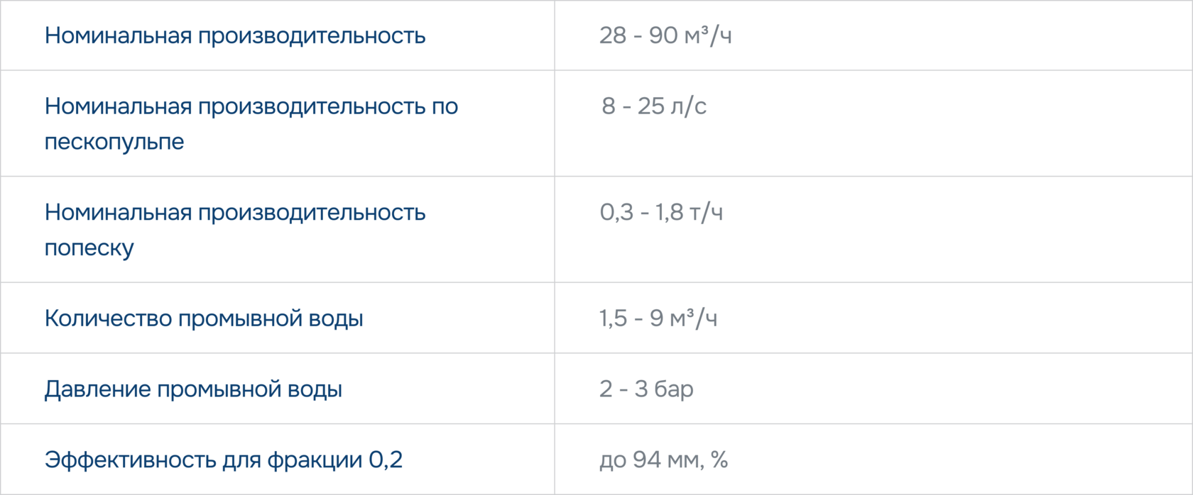 Возможность обработки пескопульпы и частично обезвоженного песка.
